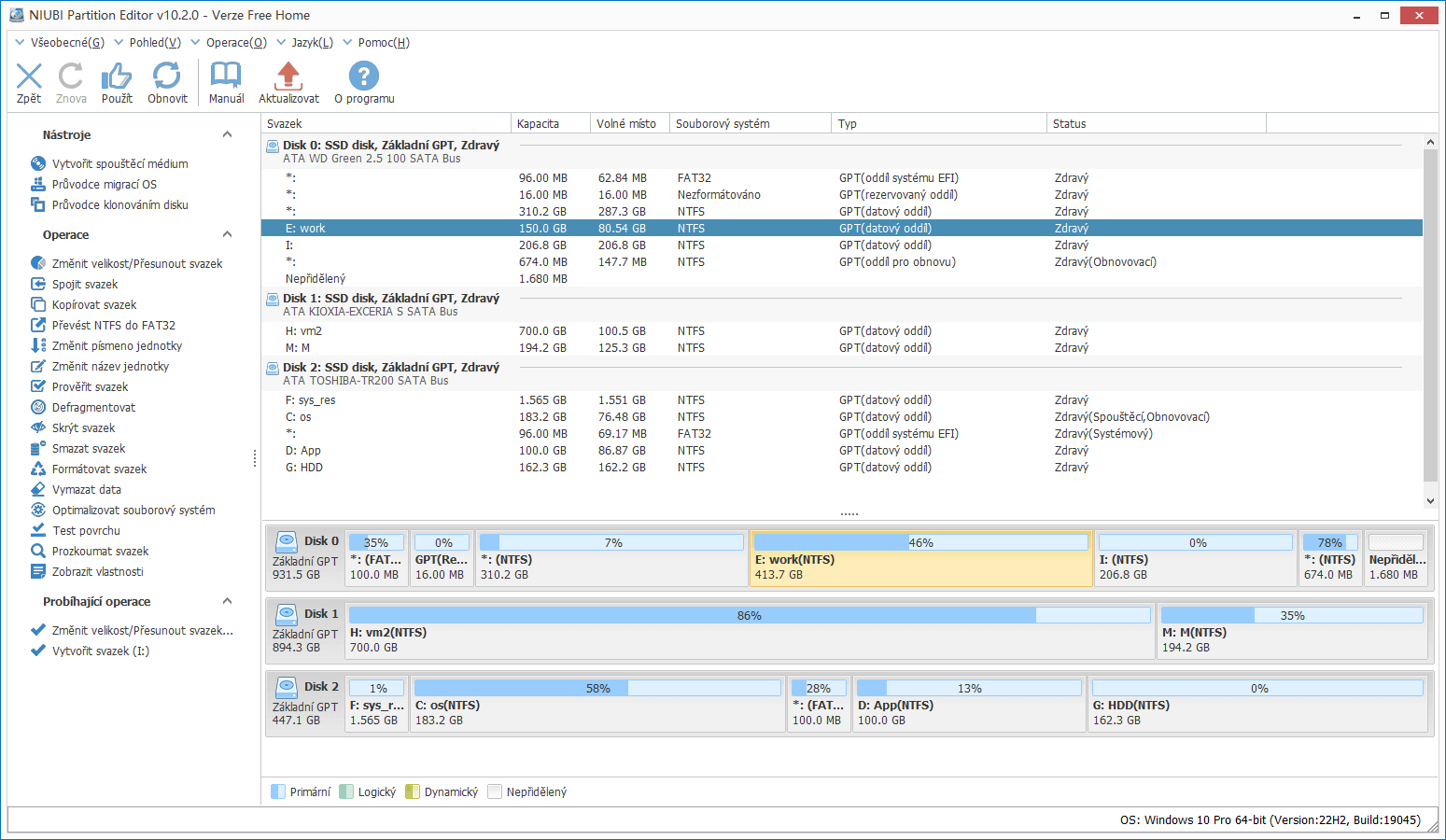 Jako nejbezpečnější a nejrychlejší bezplatný software pro diskové oddíly pro počítače se systémem Windows 11/10/8/7/Vista/XP, NIUBI Partition Editor Bezplatná edice pomáhá zmenšit, rozšířit, přesunout, sloučit oddíly pro optimalizaci místa na disku. Převést typ diskového oddílu. Klonovat diskový oddíl pro migraci operačního systému a dat. Optimalizovat souborový systém a defragmentovat oddíl pro zlepšení výkonu počítače. Vytvářet, mazat, formátovat, skrývat, aktivovat, vymazat oddíl, skenovat chybné sektory a mnoho dalšího.