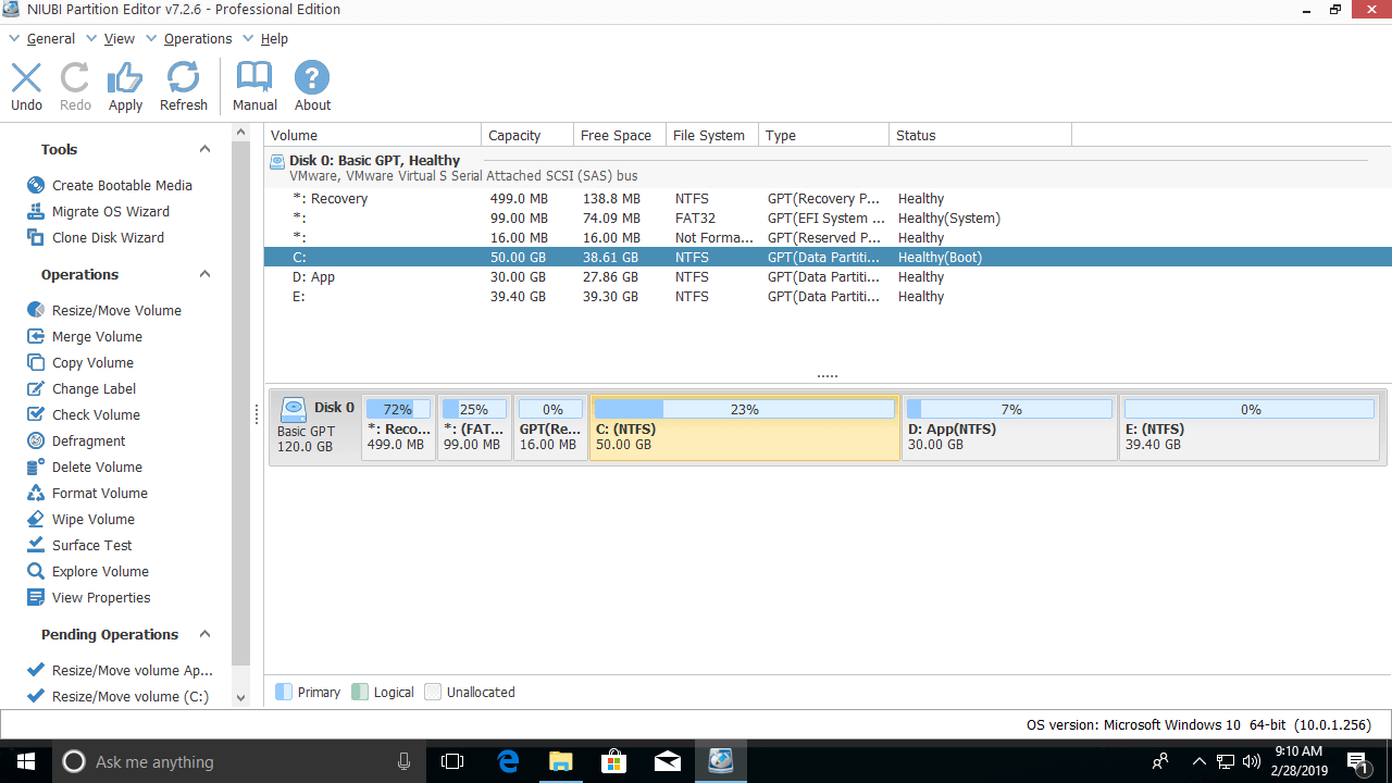 In this situation, you need 3rd-party software to move unallocated space next to C drive. Among these software, NIUBI Partition Editor has free edition for Windows 10, 8, 7, Vista, XP home computers. The most important, it has unique 1 Second Rollback, Virtual Mode, Cancel-at-will and Hot Clone technologies to protect system and data. In addition, it is much faster because of the special file-moving algorithm. This is very helpful if there are large amount of files in the right contiguous partition D.
