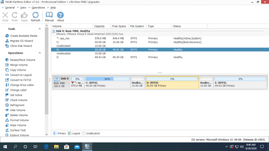 Besides shrinking and extending partition, moving and merging Unallocated space, NIUBI Partition Editor helps do many other operations. Better than other tools, it has advanced Virtual Mode, 1-Second Rollback and Cancel-at-will technologies to protect system and data.