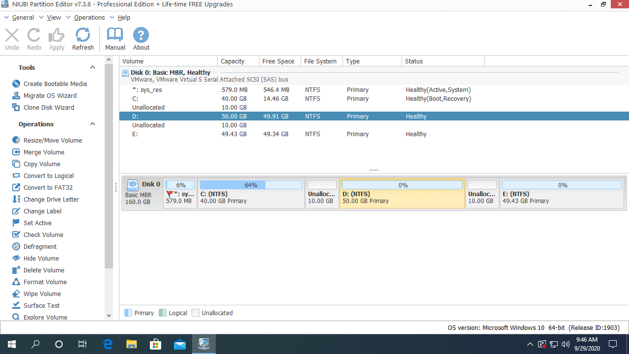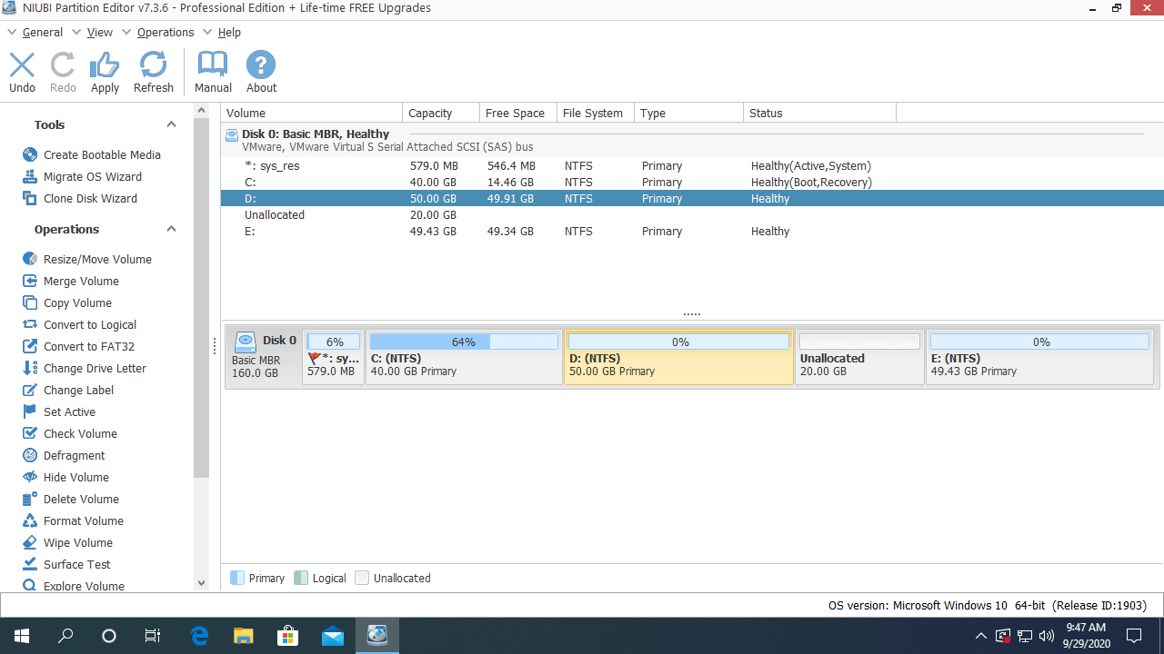 Right click D: drive and select "Resize/Move Volume, there are 2 options in the pop-up window.