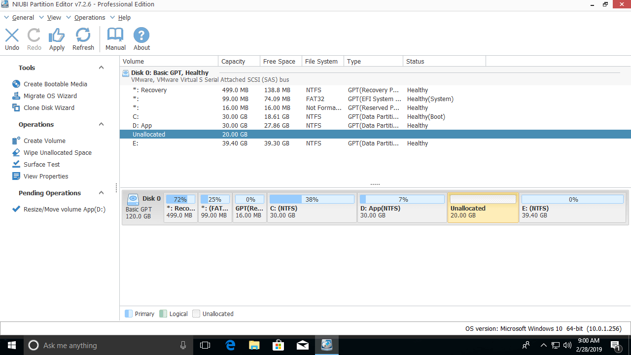 Download NIUBI Partition Editor, you'll see the main window with disk partition structure and other information on the right, available operations to selected disk or partition are listed on the left and by right clicking.