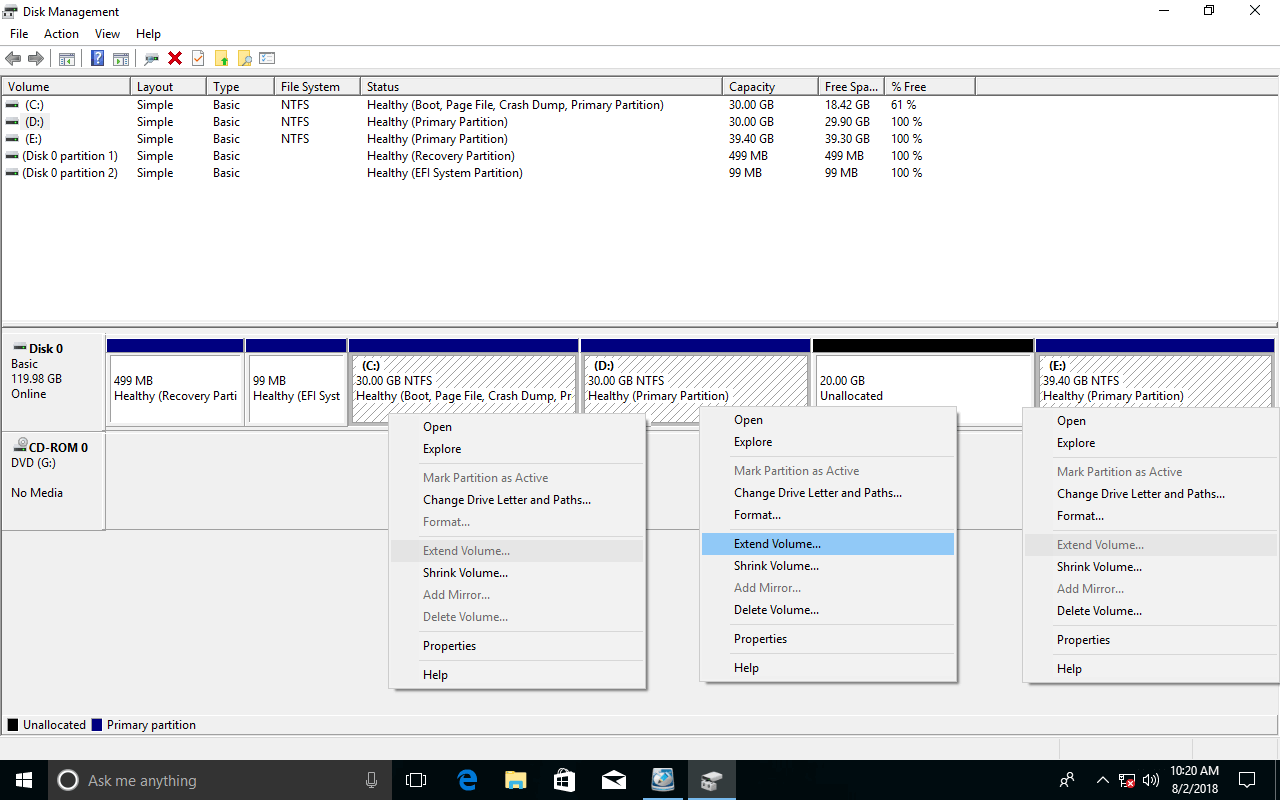 As you see in the screenshot, Extend Volume greyed out for C drive after shrinking D. From Microsoft explanation, to enlarge a drive with Extend Volume option, there should be adjacent unallocated space on the right side.