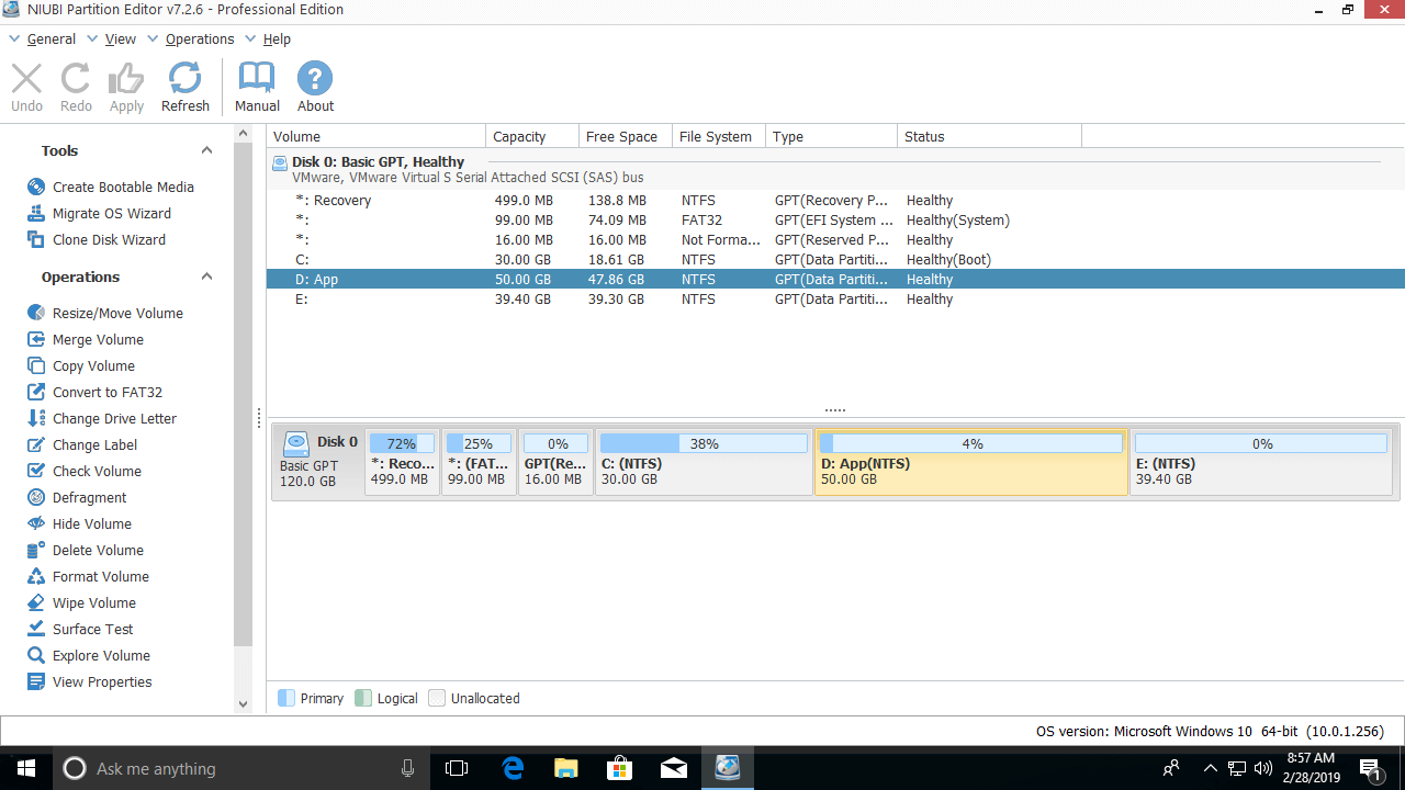 Download NIUBI Partition Editor, you'll see the main window with disk partition information and available operations.