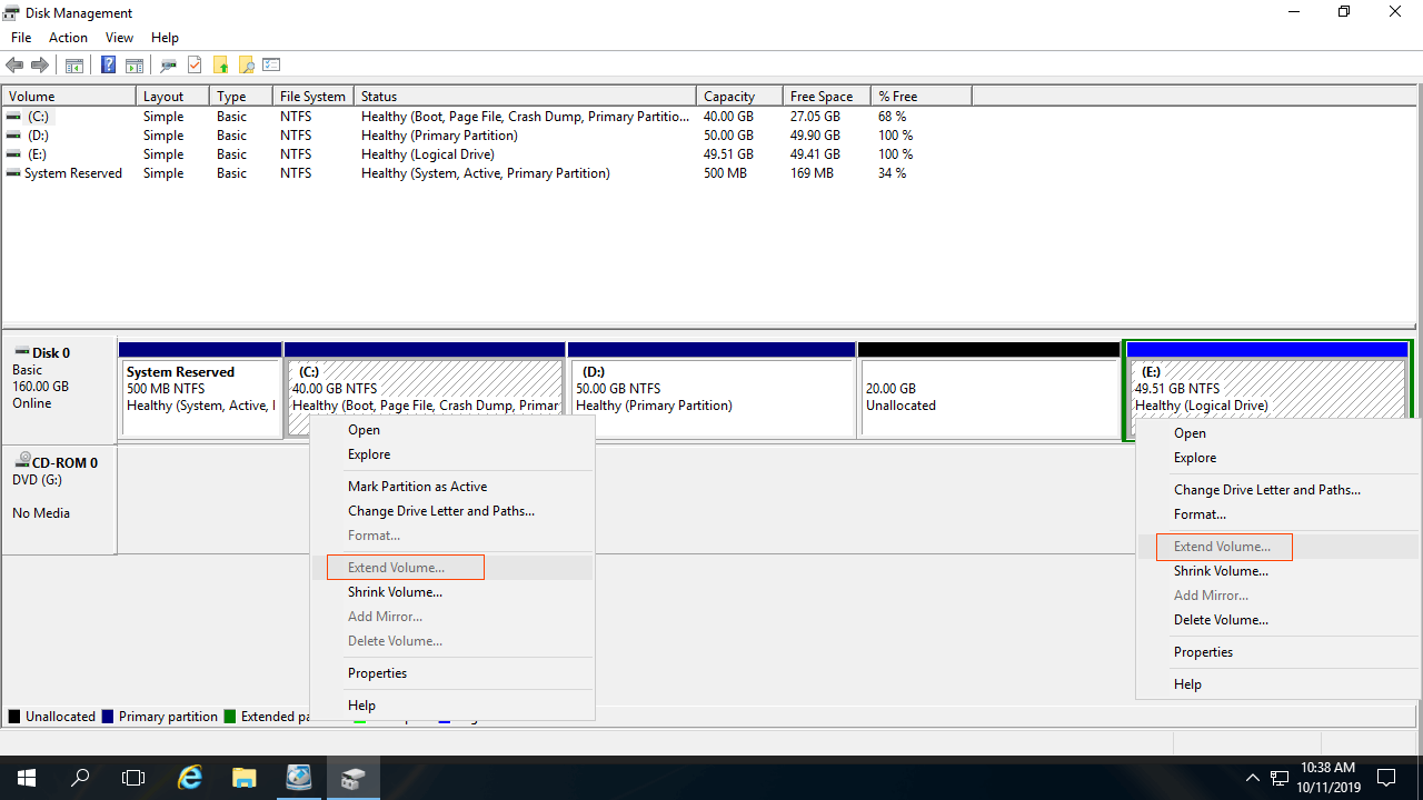 If there's not plenty of free space in the contiguous partition D, you can shrink the non-adjacent drive E. In that case, there's an additional step to move unallocated space behind C drive. Follow the steps in the video to expand system volume in Hyper-V when there's available free space on the same virtual disk.