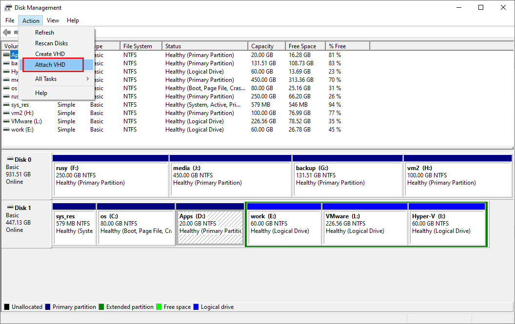 The same with physical hard disk drive, you can resize virtual partitions for Hyper-V virtual machine without losing data. It is very easy to resize partition by installing NIUBI Partition Editor to Hyper-V vm, but is it possible to resize vhd/vhdx partition without Hyper-V? The answer is yes, this article introduces detailed steps to resize vhd/vhdx virtual partition and disk without Hyper-V.