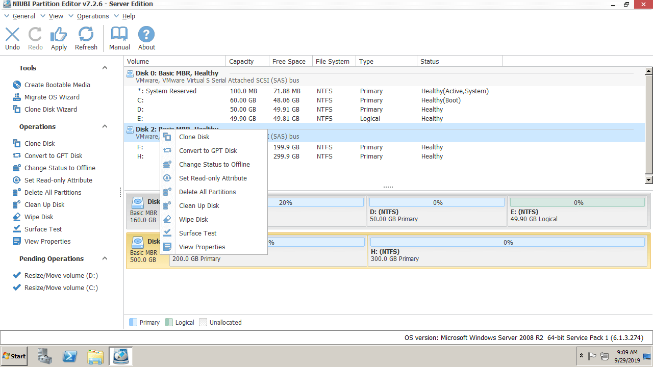 Most of your disk and partition management requirements can be fulfilled. NIUBI Partition Editor is not the one that has most amount of functions, but because of its powerful data protection ability, fast file-moving algorithm and many other advantages, it is recommended by many professional editors as the best partition manager for Windows server.