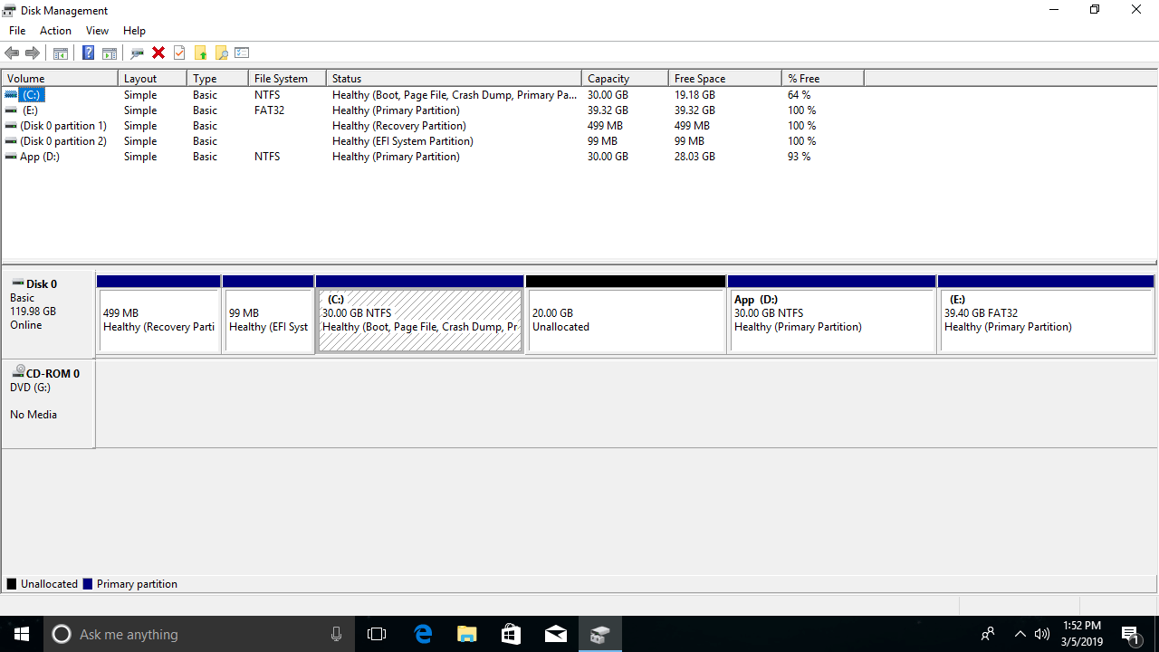 - Unallocated space can't be combined to the right or any non adjacent partitions.