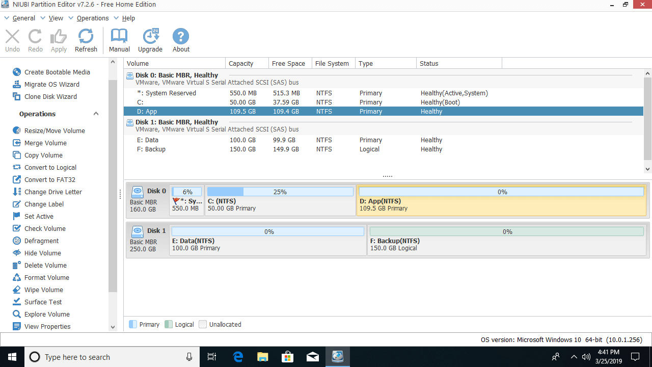 Comparing with other Windows 10 partition manager software, NIUBI Partition Editor is much safer and faster because of the advanced technologies and algorithm.