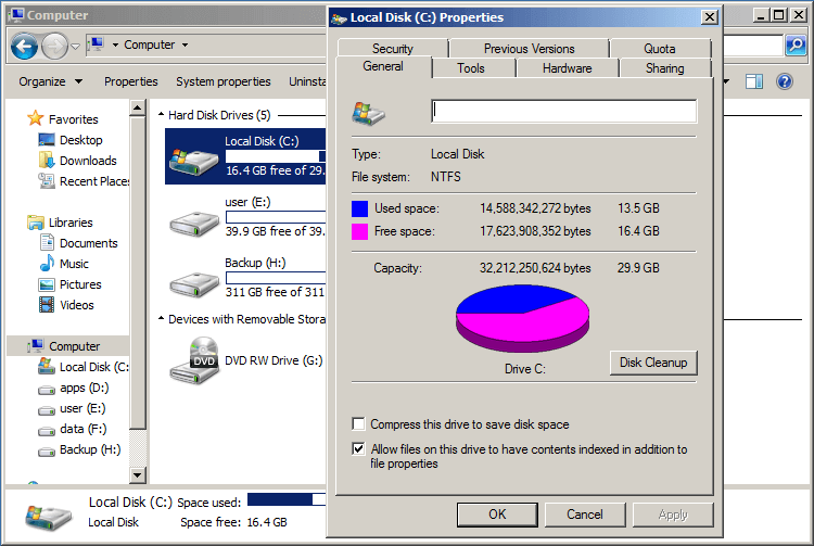 When system C: drive is running out of space, you may clean up C drive to delete the unnecessary and junk files. From Microsoft Windows 98, there's already a native disk cleanup utility to help accomplish this task. But different with other versions, many people find that Disk Cleanup is missing in Windows Server 2008 R2. Because Disk Cleanup is not enabled in Windows Server 2008 by default, so before running Disk Cleanup in Server 2008 R2, you should install or enable it by yourself. This article introduces how to install/enable Disk Cleanup in Windows Server 2008 R2 and how to free up disk space with this inbuilt tool.