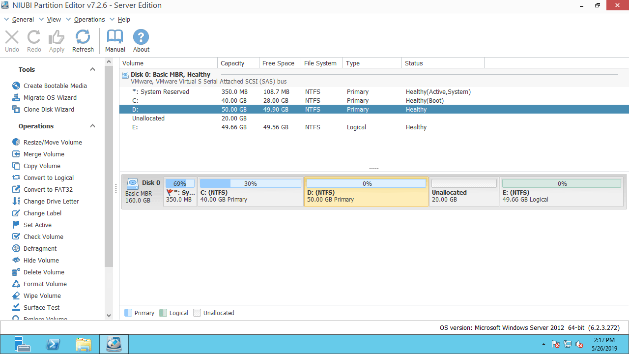 When Extend Volume is grayed out in Windows Server 2012 Disk Management, find out the associated reason on your server and follow the corresponding method above. Besides shrinking, moving and extending partition, NIUBI Partition Editor helps you merge, copy, convert, hide, wipe, defrag, scan partition and much more.
