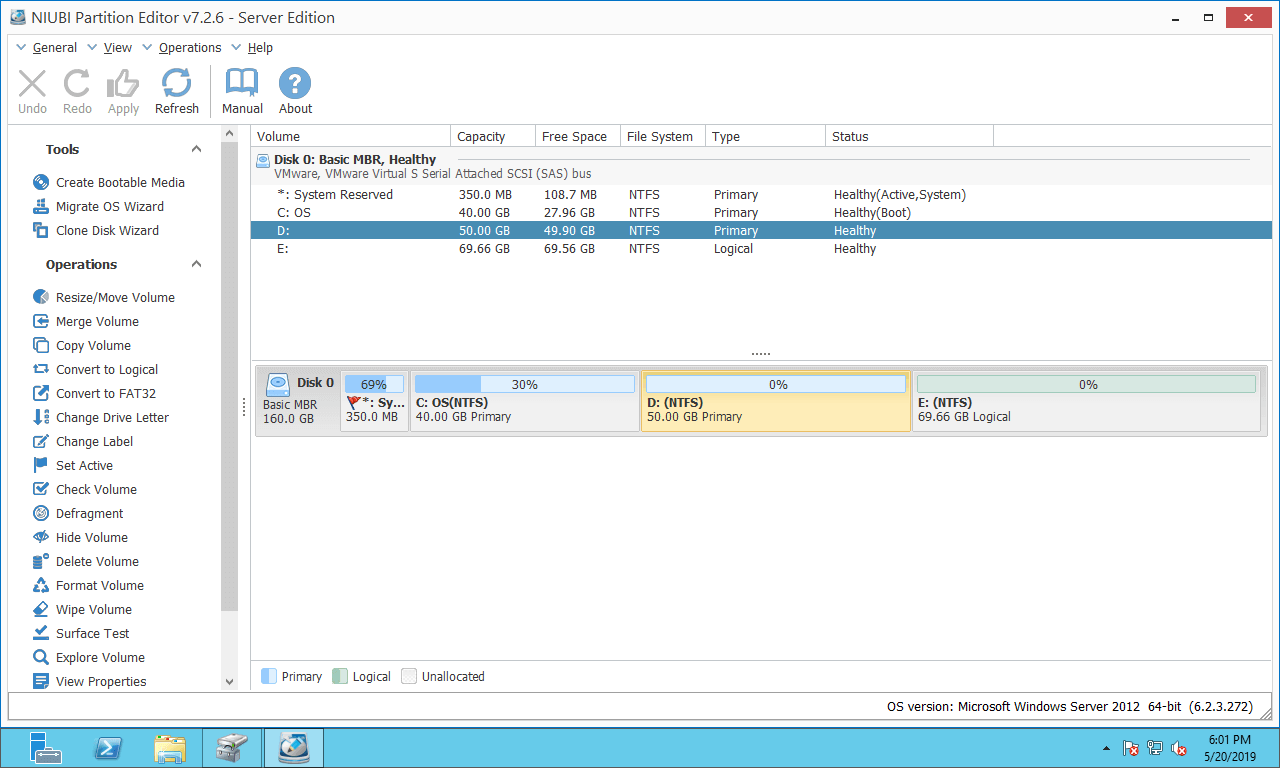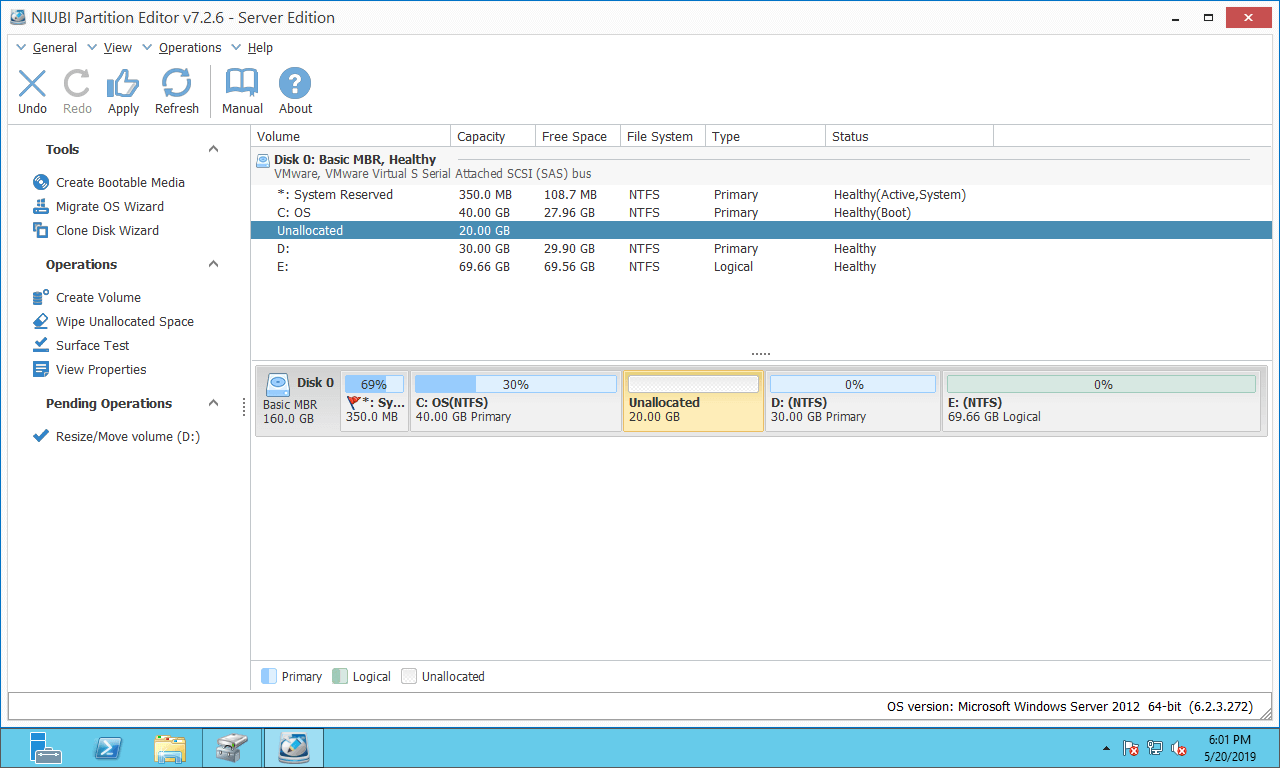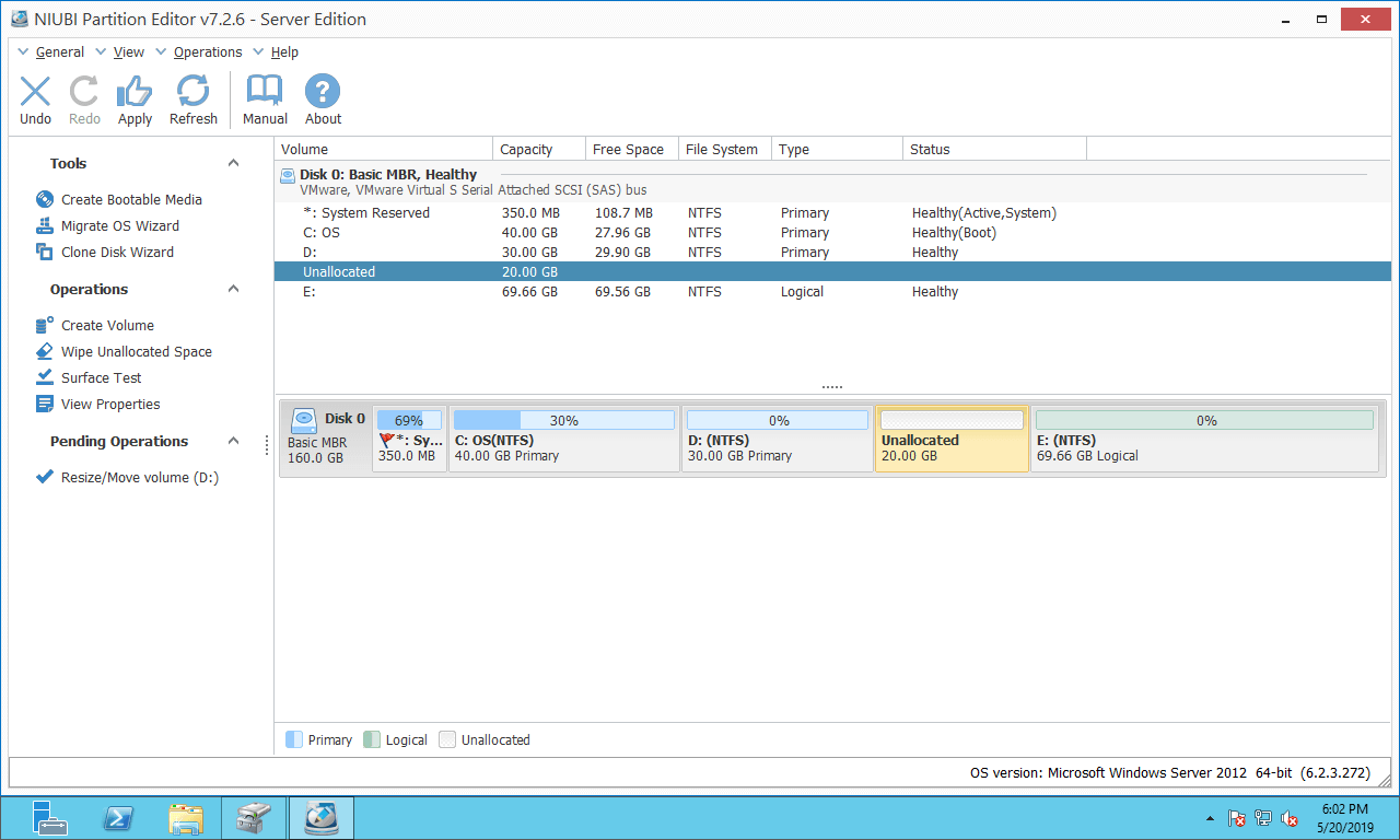 Shrink Server 2012 volume with NIUBI Partition Editor