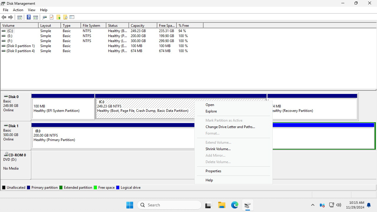 Like previous versions, Server 2025 Disk Management has the 'Shrink Volume' and 'Extend Volume' functions to help resize partitions without losing data in most cases.